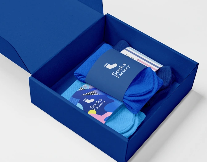 Po dokončení návrhu ponožek si vyberte typ balení. Můžete přidat etiketu, proužek, krabici na 1 pár nebo objednat samotné ponožky bez balení.