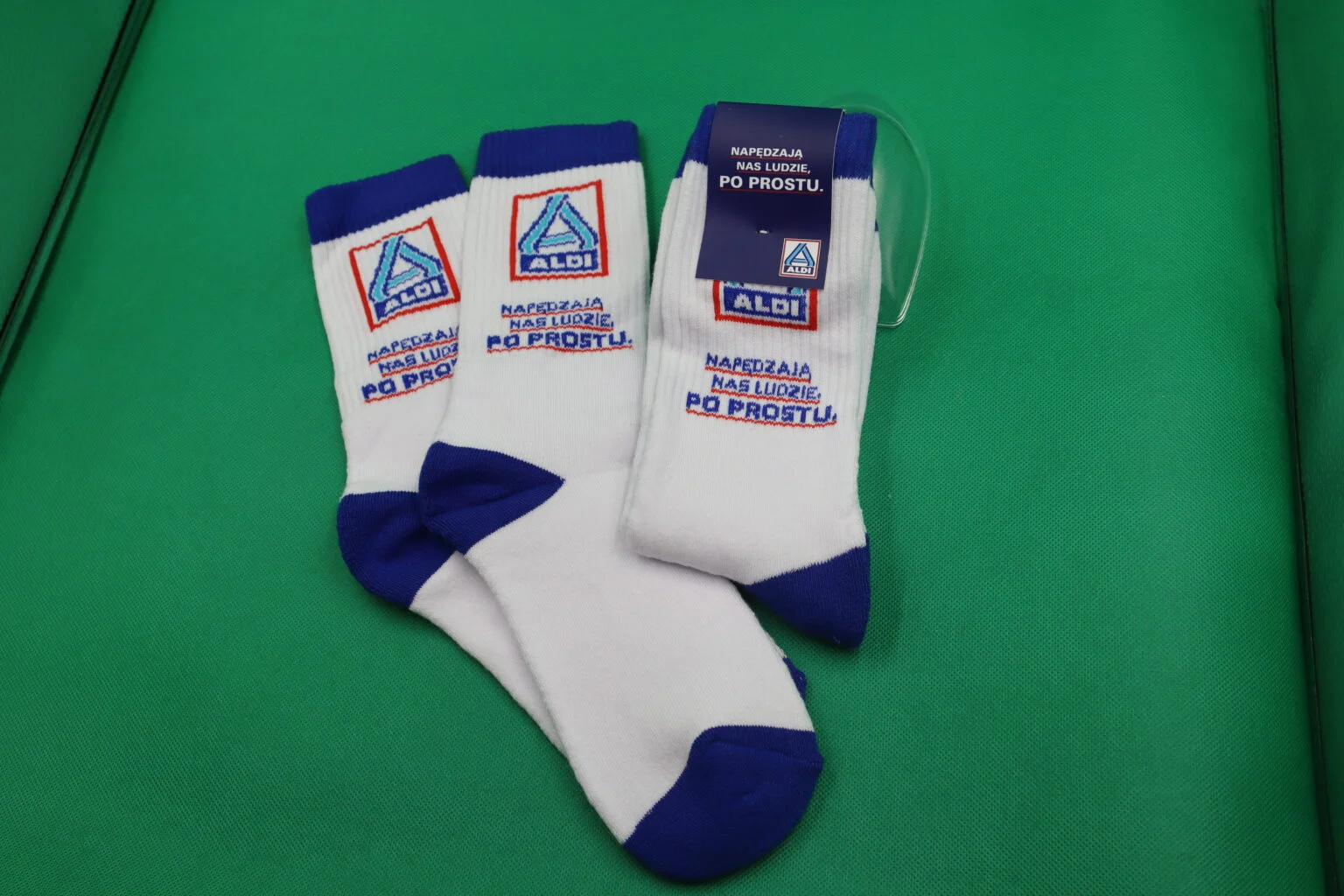 Ponožky navržené ALDI byly používány v mnoha interních iniciativách, jako například ALDI Quiz nebo Poland Business Run. Mohly je také získat osoby účastnící se různých soutěží značky (ALDI Práce, Adventní Kalendář), prováděných na sociálních médiích. Jsme rádi, že našimi akcemi jsme mohli přispět k realizaci interních projektů ALDI. A upřímně věříme, že naše teplé ponožky každý den zahřívají mnoho nohou, které kráčejí po obchodních chodbách a kancelářských koridorech. Děkujeme za důvěru ALDI!