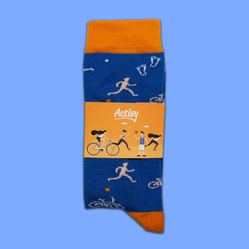 “Activy” je řada ponožek, kterou tým Mindy App navrhl pro interní potřeby své značky – pro pracovnice a pracovníky. V rámci této série vznikly dva různé, velmi pěkné vzory. Každý z nich odkazuje na fyzickou aktivitu. První, oranžový, s motivem cvičebních náčiní. A druhý, modrý, na němž se objevily prvky spojené se sportem – dokonce i nohy. Myslíme, že pro takový sportovní poselství byl výběr gadgetu prostě trefný. Vždyť abyste mohli běhat, skákat, nebo hrát fotbal, musíte mít měkké a pohodlné ponožky, že?